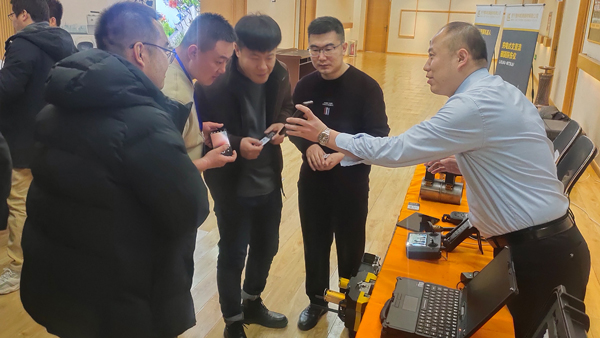 濟寧魯科檢測器材有限公司攜聯(lián)合中國石油大學(華東)研發(fā)的LKACFM交流電磁場檢測儀,及自主研發(fā)的LKMT-D3系列無線磁軛探傷儀、LKMT-E3L系列管道磁粉探傷儀、LKMT-E3A系列角焊縫磁粉探傷儀、LKEMAT-A2腐蝕測厚機器人等無損檢測設備參加設備展示,儀器一經(jīng)亮相,便引起與會高檢師廣泛關注與一致好評。
